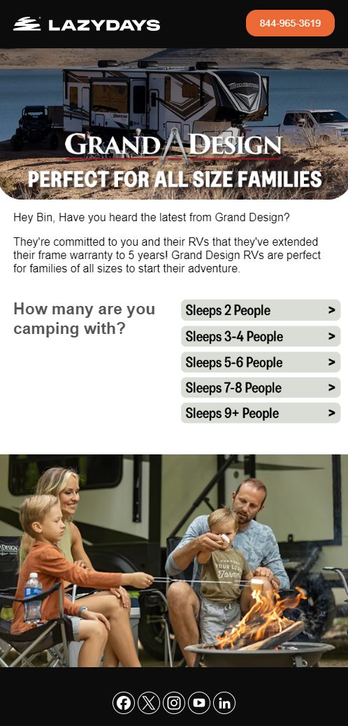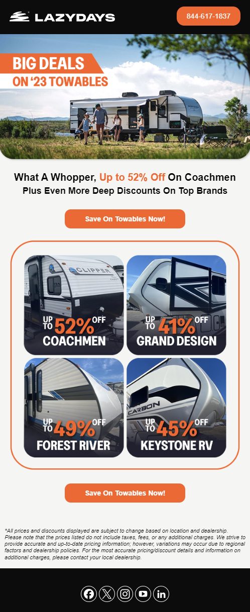 Professional email design, showcasing tailored campaigns for hotels and restaurants, including seasonal promotions and specialized menus, alongside targeted inventory and Airstream promotions for Lazydays, expertly crafted using MoEngage, HubSpot, and Salesforce Pardot.